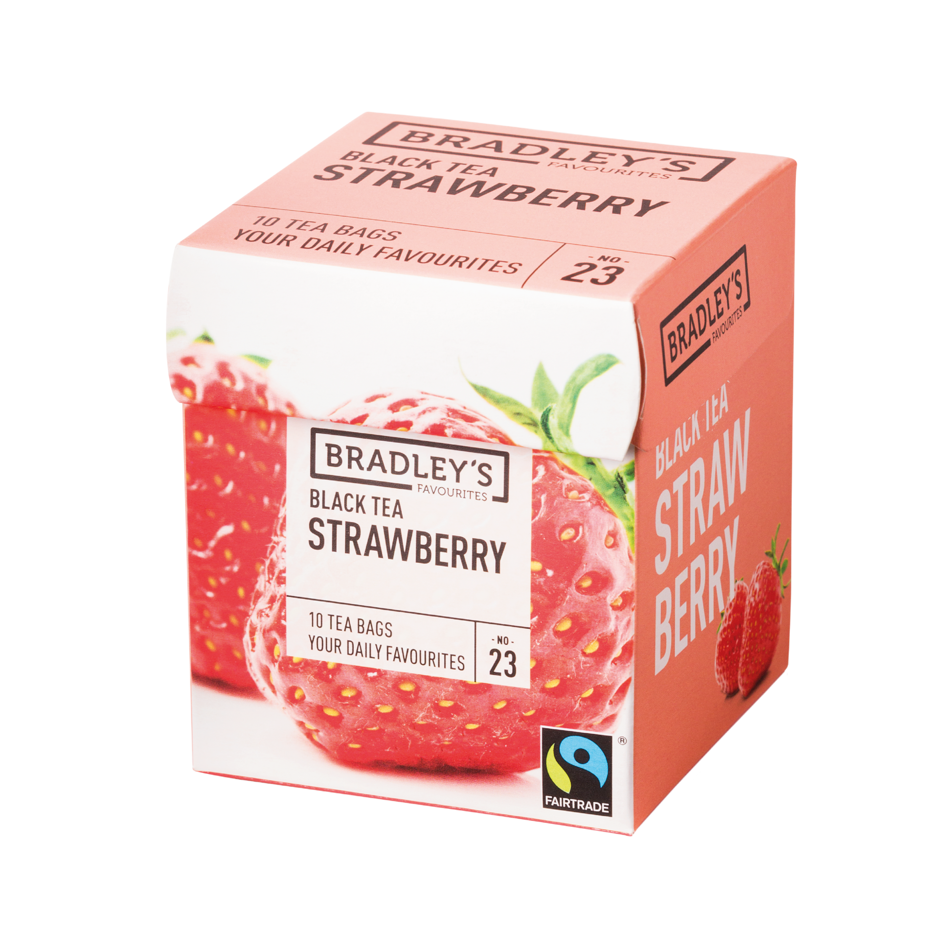 Een pure Ceylon thee in combinatie met het friszoete van aardbei. Het oorspronkelijke karakter van de zwarte thee blijft bewaard in deze heerlijke blend. De No. 23 Black Tea Strawberry is onderdeel van de Bradley's Favourites selectie.