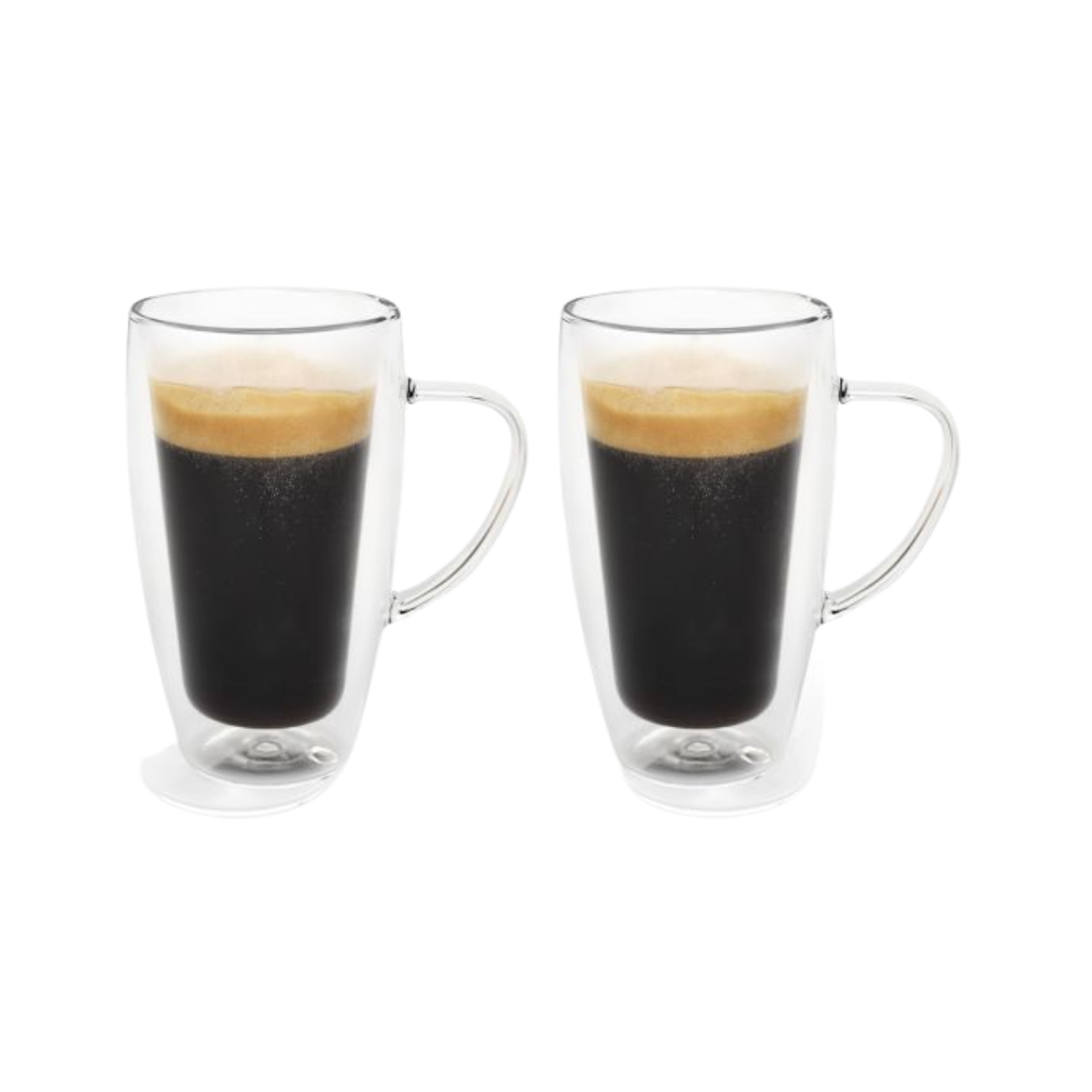Deze mooie Bredemeijer koffie- of theeglazen zijn gemaakt van borosilicaatglas, dat een langere levensduur heeft dan de meeste glassoorten. Dankzij de dubbele glazen wand blijven warme dranken langer warm en koude dranken koel zonder condensvorming. Door de dubbelwandige werking wordt de buitenkant van het glas niet heet, waardoor je hem gemakkelijk vast kunt houden zonder je handen te branden. De glazen hebben een inhoud van 320 ml en kunnen in de magnetron en de vaatwasser. De set bestaat uit 2 stuks.
