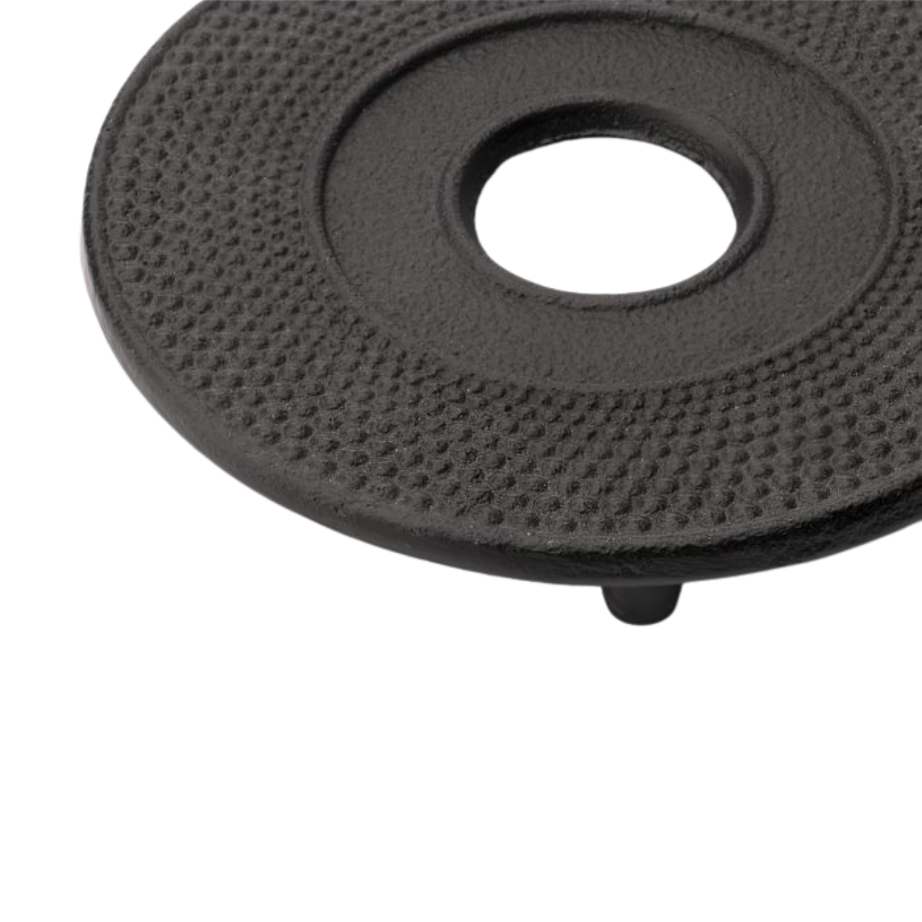 Prachtige gietijzeren onderzetter met nopstructuur in de kleur zwart. Deze onderzetter is hoogwaardig gietijzer en heeft dankzij de drie pootjes een stabiele basis. Met deze onderzetter voorkomt u kringen op tafel die en theepot kan achterlaten. Het design past perfect bij de Jang theepot van Bredemeijer of een van de andere gietijzeren theepotten van Bredemeijer. Verkrijgbaar in groen, rood en zwart.