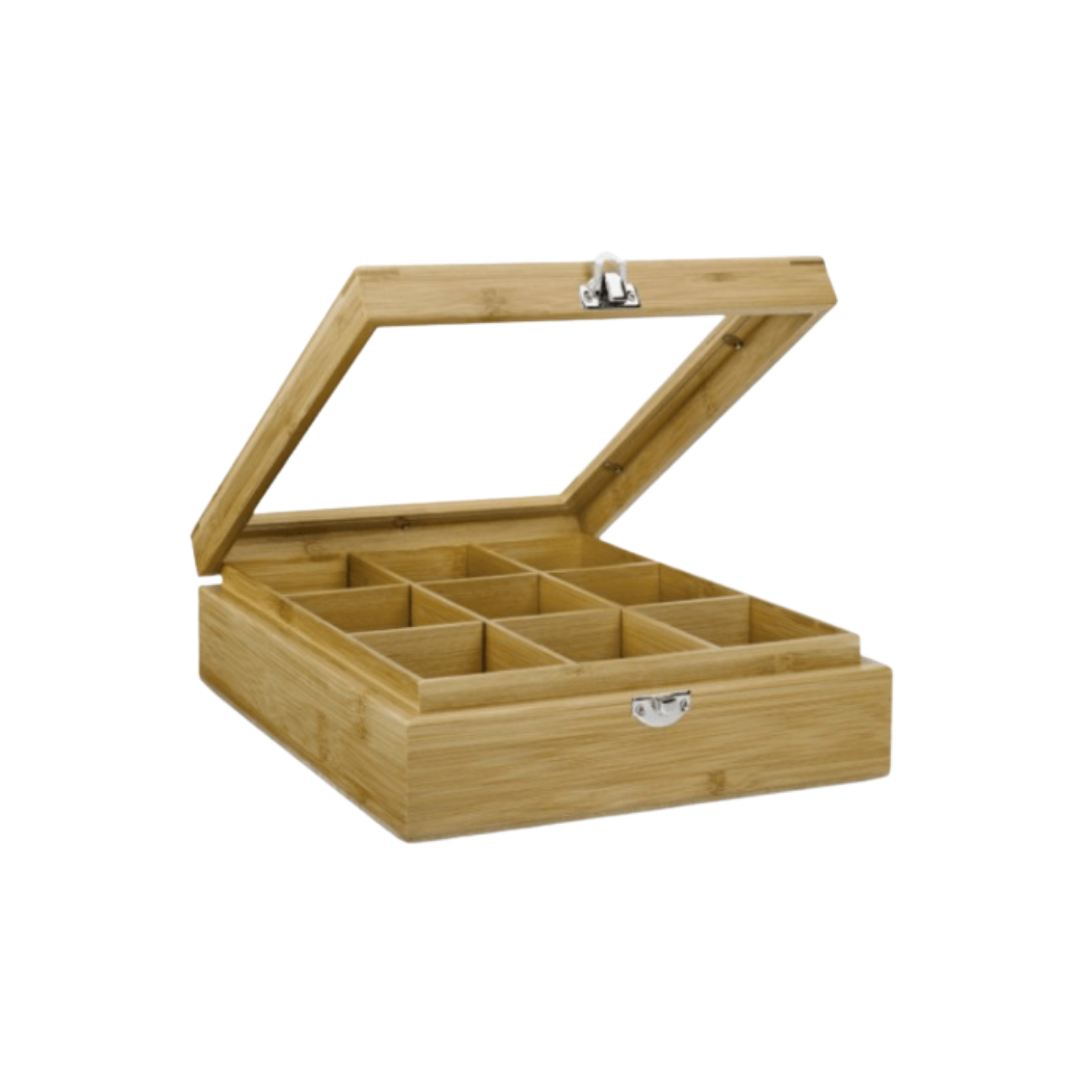 Deze theedoos van Bredemeijer heeft 9 vakken en is met doorschijnend venster. Deze theedoos is ideaal voor het bewaren van theezakjes. Met sluiting van roestvrijstaal. Gemaakt van bamboo.