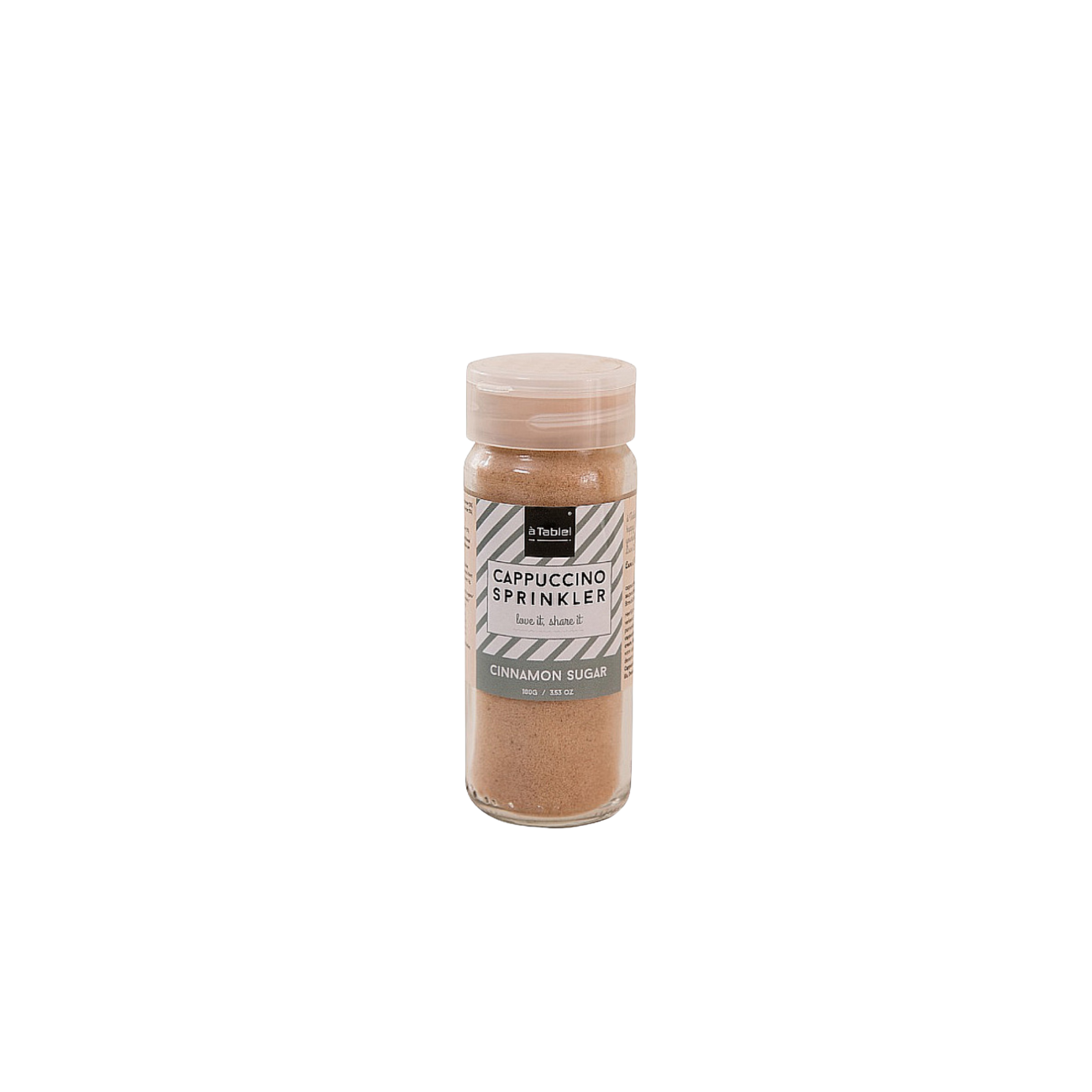 Geef uw cappuccino, latte of dessert een warme, kruidige twist met deze cappuccinostrooier van à Table! in de smaak kaneelsuiker. De combinatie van fijne suiker en kaneel zorgt voor een gezellige, lichtzoete smaakbeleving die perfect past bij koffie én gebak.