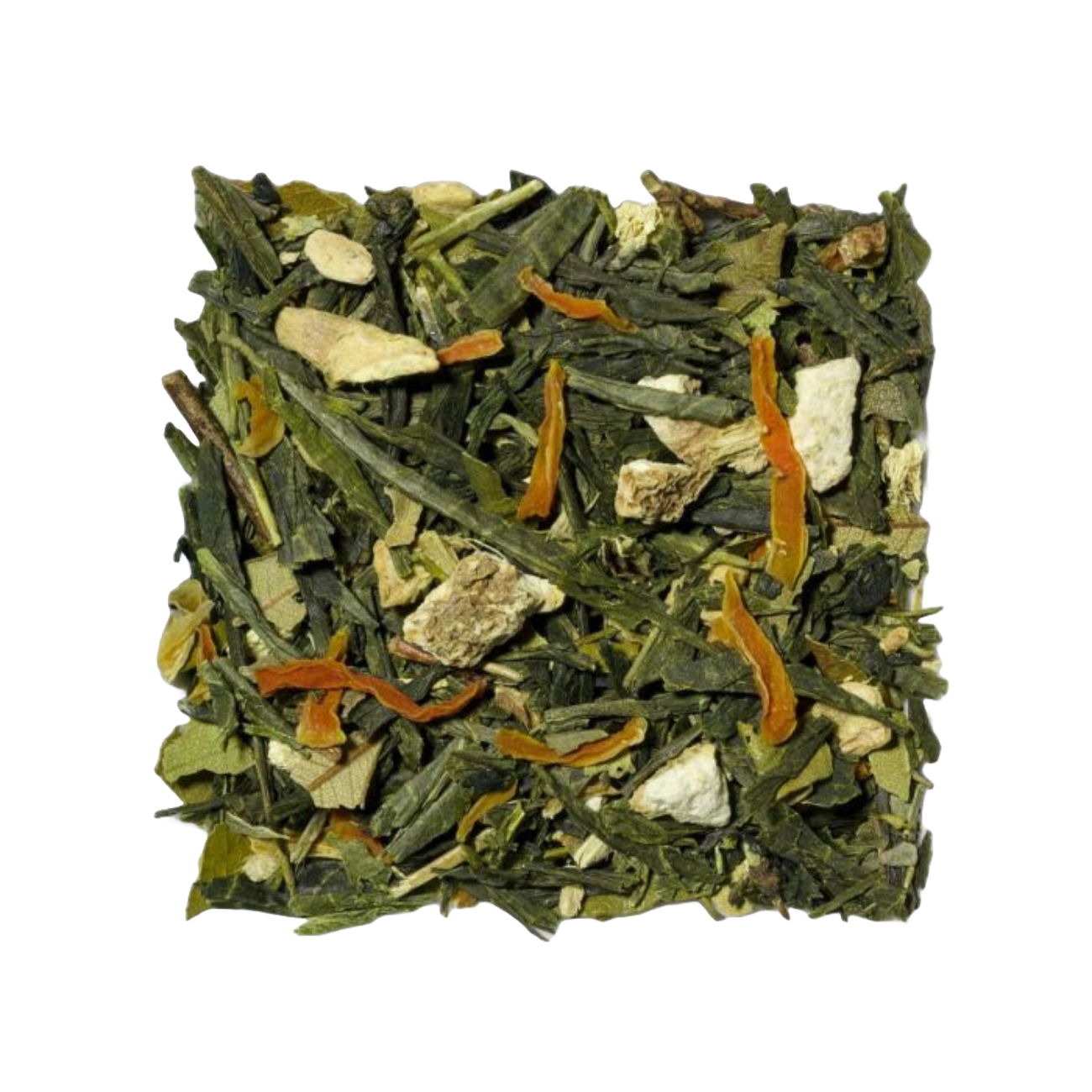 Een opwekkende thee die verfrist en verwarmt tegelijk! Een natuurlijke mix van groene thee, gember en citrus voor een perfecte balans tussen fris en kruidig. De milde Japanse Sencha wordt verrijkt met verse citrusschillen, citroenmirte en pittige gember, terwijl een vleugje kaneel en wortelreepjes voor een zachte zoetheid zorgt.