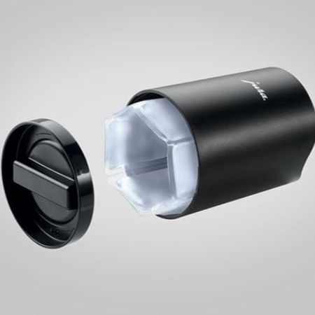 Via een schroefbare dekselbodem kan de koelmanchet in de glacette worden geplaatst en eruit worden gehaald. De vormgeving is perfect afgestemd op het design en past bij elke volautomaat van JURA.
