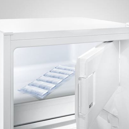 De koelmanchet kan gemakkelijk ‘s nachts in het vriesvak worden gezet, waar hij weinig ruimte inneemt. ‘s Morgens is hij bevroren. Wanneer hij dan in de glacette wordt geplaatst, houdt hij de melk in de glazen melkhouder tot wel 2 uur koel.