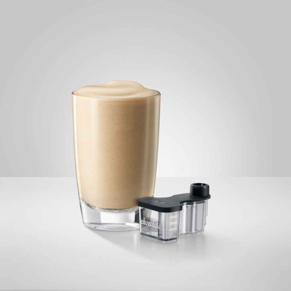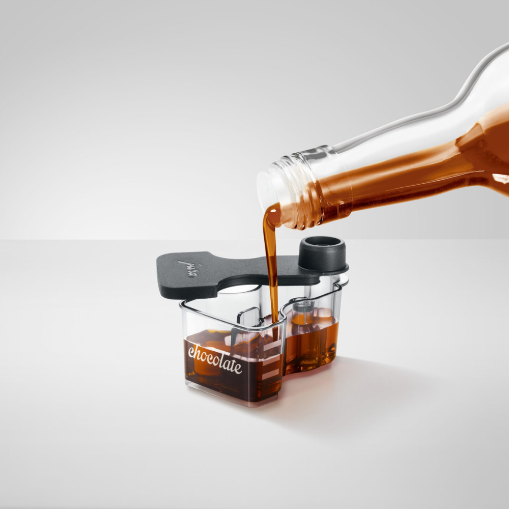 Het chocolade-opzetstuk voor chocoladesiroop verrijkt de smaakwereld van de Z10. Het biedt een selectie mocaccino's en tovert chocoladeschuim voor kinderen. Dankzij de ergonomische vorm kan het gemakkelijk aan de combi-uitloop worden bevestigd. Vullen gaat op dezelfde manier; gewoon met een afneembaar siliconen deksel en nauwkeurig dankzij de eenvoudige schaalverdeling. Een licht of vol cacao-aroma – de hoeveelheid chocoladesiroop bepaalt de smaak. Zowel mochaccino als chocoladeschuim worden vers en moeiteloos bereid met het chocolade-opzetstuk en de Z10.