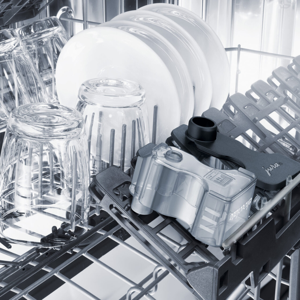 Het chocolade-opzetstuk is eenvoudig te gebruiken en te reinigen. Spoel het na gebruik af onder stromend water en maak de afzonderlijke onderdelen schoon met afwasmiddel. Daarna wordt het aan de lucht gedroogd en is het klaar voor de volgende bereiding. Als alternatief kunt u het chocolade-opzetstuk in zijn afzonderlijke onderdelen in de vaatwasser reinigen. Dit houdt het plezier van de accessoires voor chocoladegenot levend.
