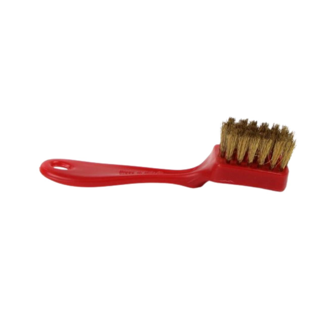 Borstel is van staal, handvat is van rood kunststof.