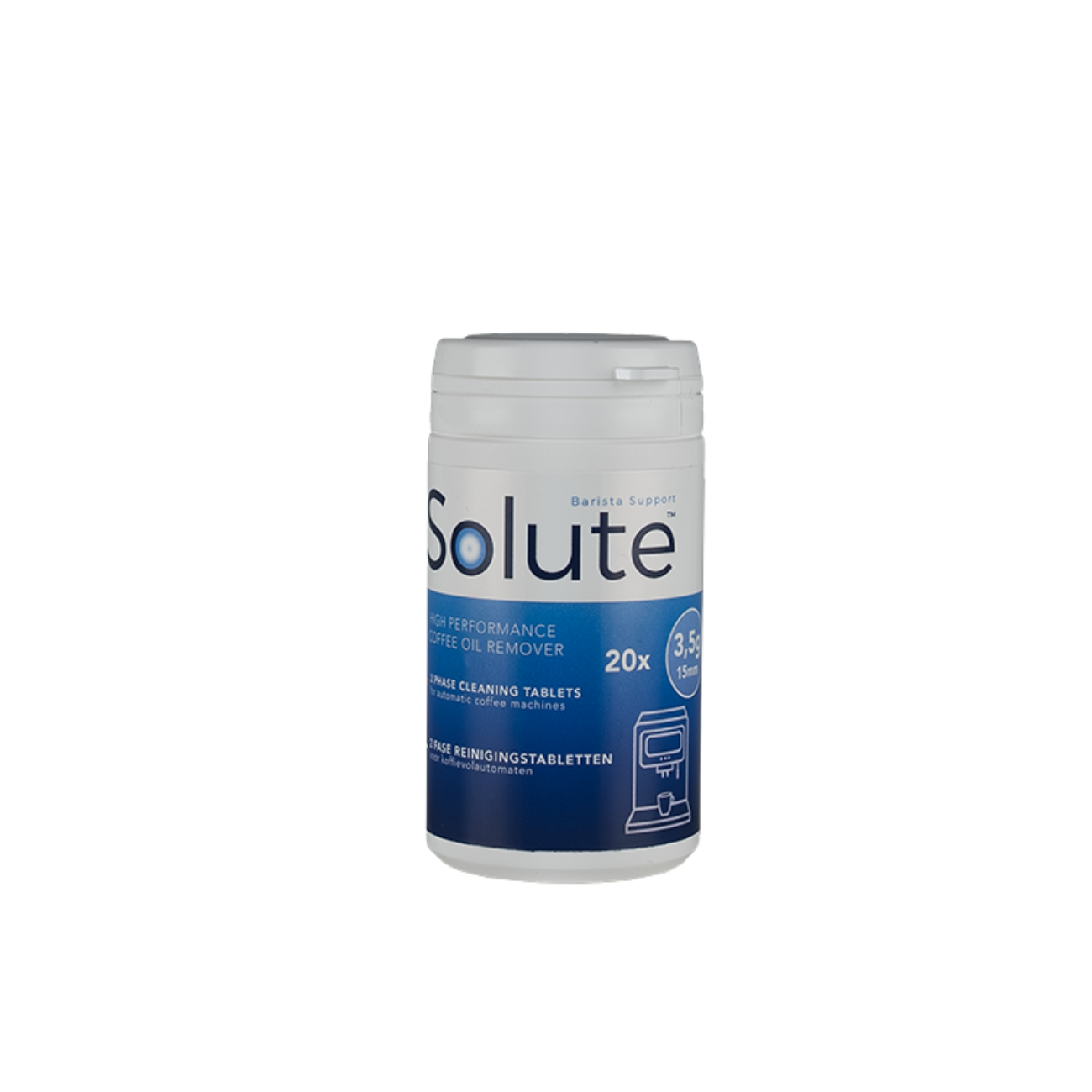 Solute 2-fase reinigingstabletten zijn ontwikkeld voor het reinigen van volautomaten, espresso- en filtermachines. De unieke reinigingsformule van Solute lost hardnekkige en ongewenste afzettingen als koffievetten en -residuen op in de zetgroep, ventielen, kleppen en fijne leidingen. Solute heeft een zeer uitgebreid assortiment aan tabletten waardoor wij u een volledig equivalent van het origineel kunnen aanbieden. Dankzij de krachtige formule is één tablet voldoende per reinigingsbeurt. De reinigingstabletten zijn ook geschikt voor het schoonmaken van espressomachine-onderdelen. Na het reinigen van uw machine kunt u weer genieten van een heerlijke pure koffiesmaak.