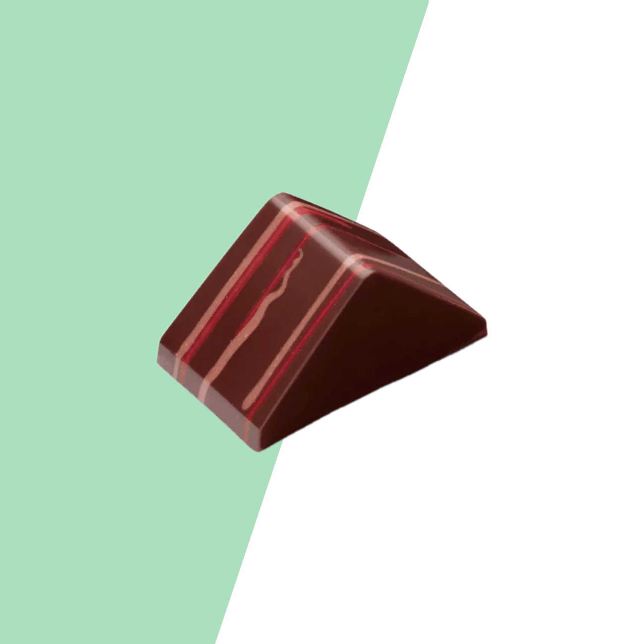Een heerlijke bonbon van pure chocolade, gevuld met bitterspijs, amandel en framboos.