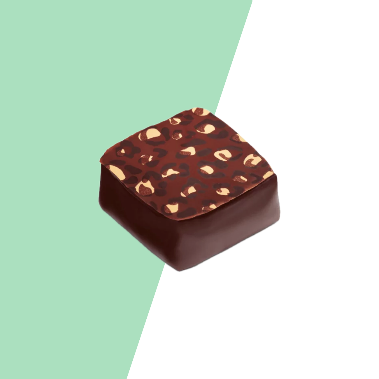 Een heerlijke bonbon van Tanzaniaanse chocolade, gevuld met een crème van banaan en een vleugje rum.