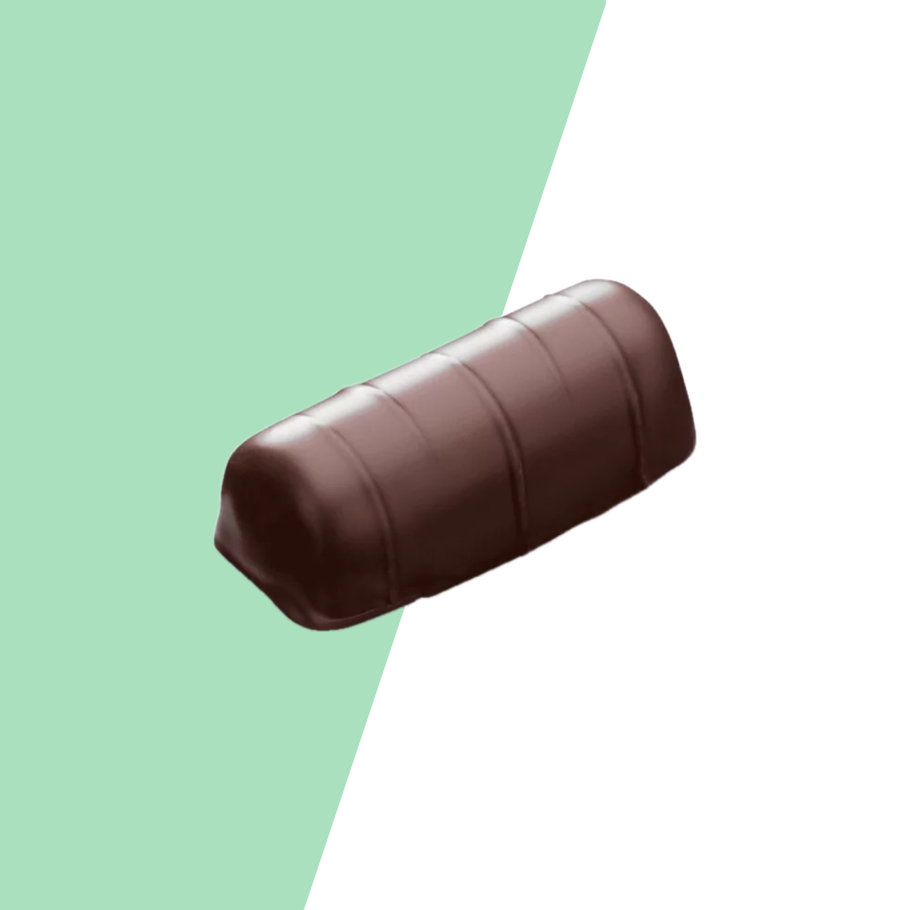 Een heerlijke bonbon van Tanzania chocolade, gevuld met amandel marsepein.