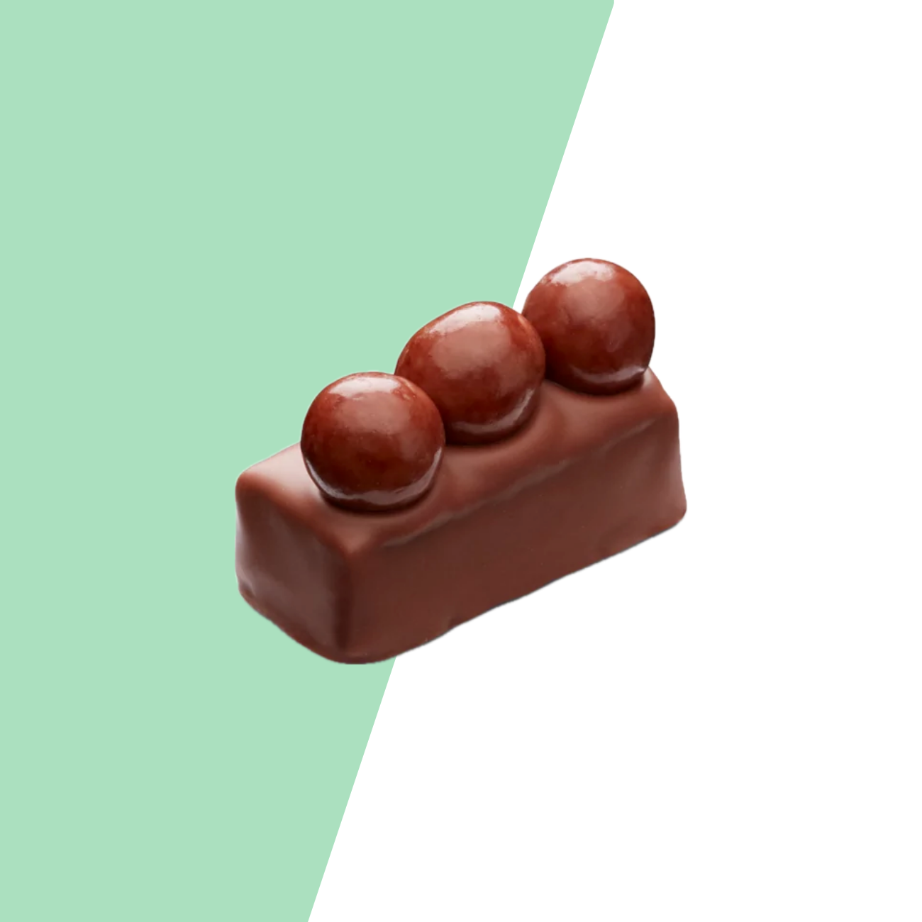 Een heerlijke bonbon van Tanzania melkchocolade, met een vulling van koffie en afgetopt met heerlijke hazelnootjes.