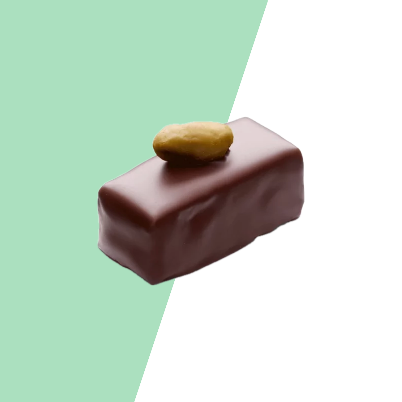 Een heerlijke bonbon van Tanzania chocolade, gevuld met een ganache crème van romige pistachenoten en zachte vanille.